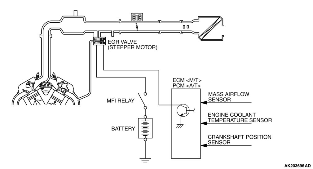 When the engine coolant temperature is low, when the engine is at idle or when a wide open throttle operation is performed, the EGR valve (Stepper Motor) is kept closed, achieving no EGR. After warming up the engine, the EGR valve (Stepper Motor) can be opened by the engine control module (ECM) or powertrain control module (PCM).