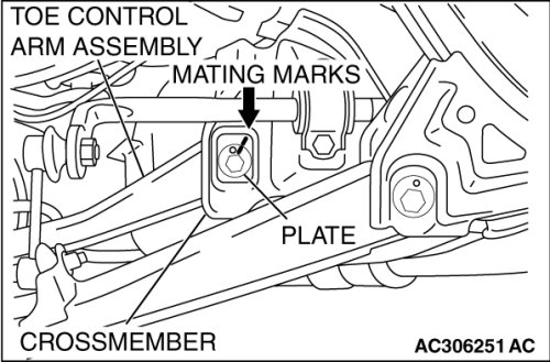 Place mating marks on the crossmember and the plate before removing the assist link bolt.