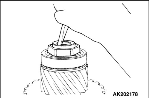 1. Apply ATF on a new locknut, and use special tool MD998834 to tighten the specified torque.