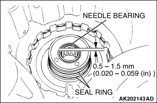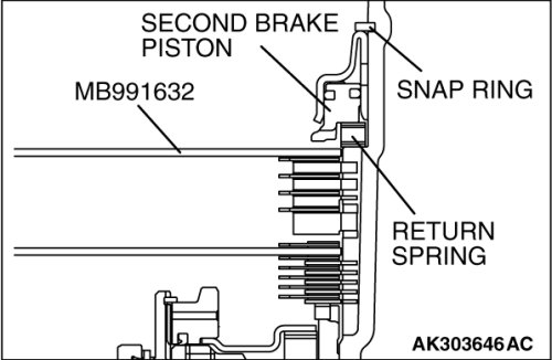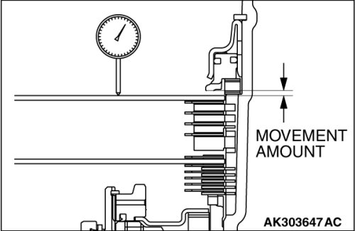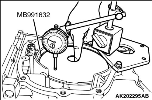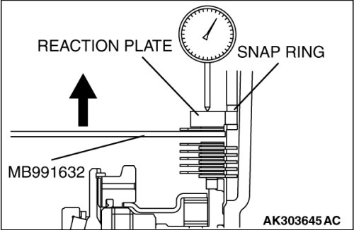 12. Move special tool MB991632 to measure the end play of reaction plate. Then replace the snap ring installed in step 11 to adjust the end play to standard value.