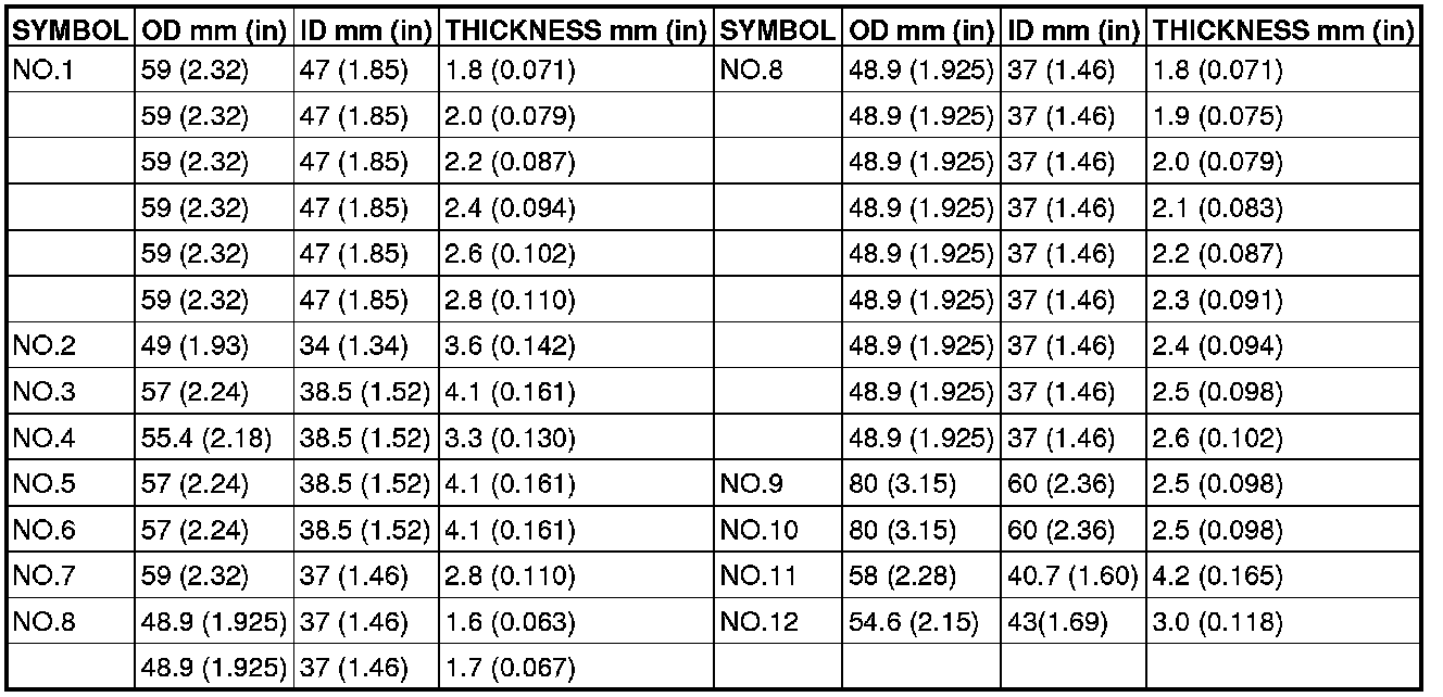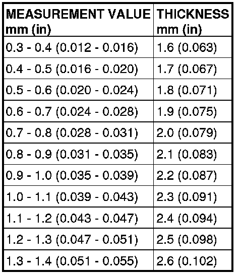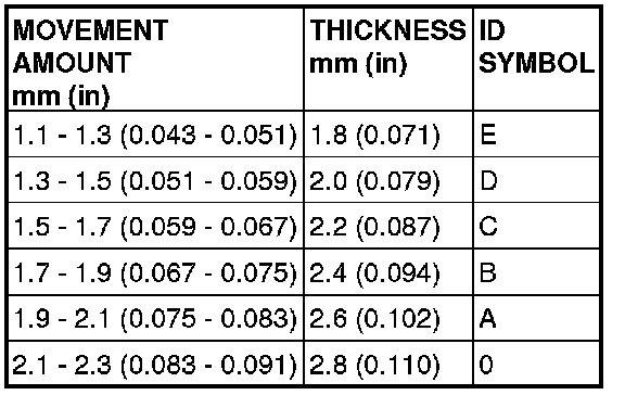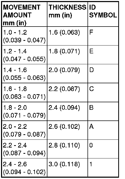 17. Select a pressure plate whose thickness corresponds to the measured amount of movement from the following table.