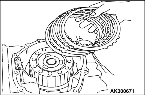- Apply ATF to friction components, rotating parts, and sliding parts before installation. Immerse new clutch discs or brake discs in ATF for at least two hours before assembling them.