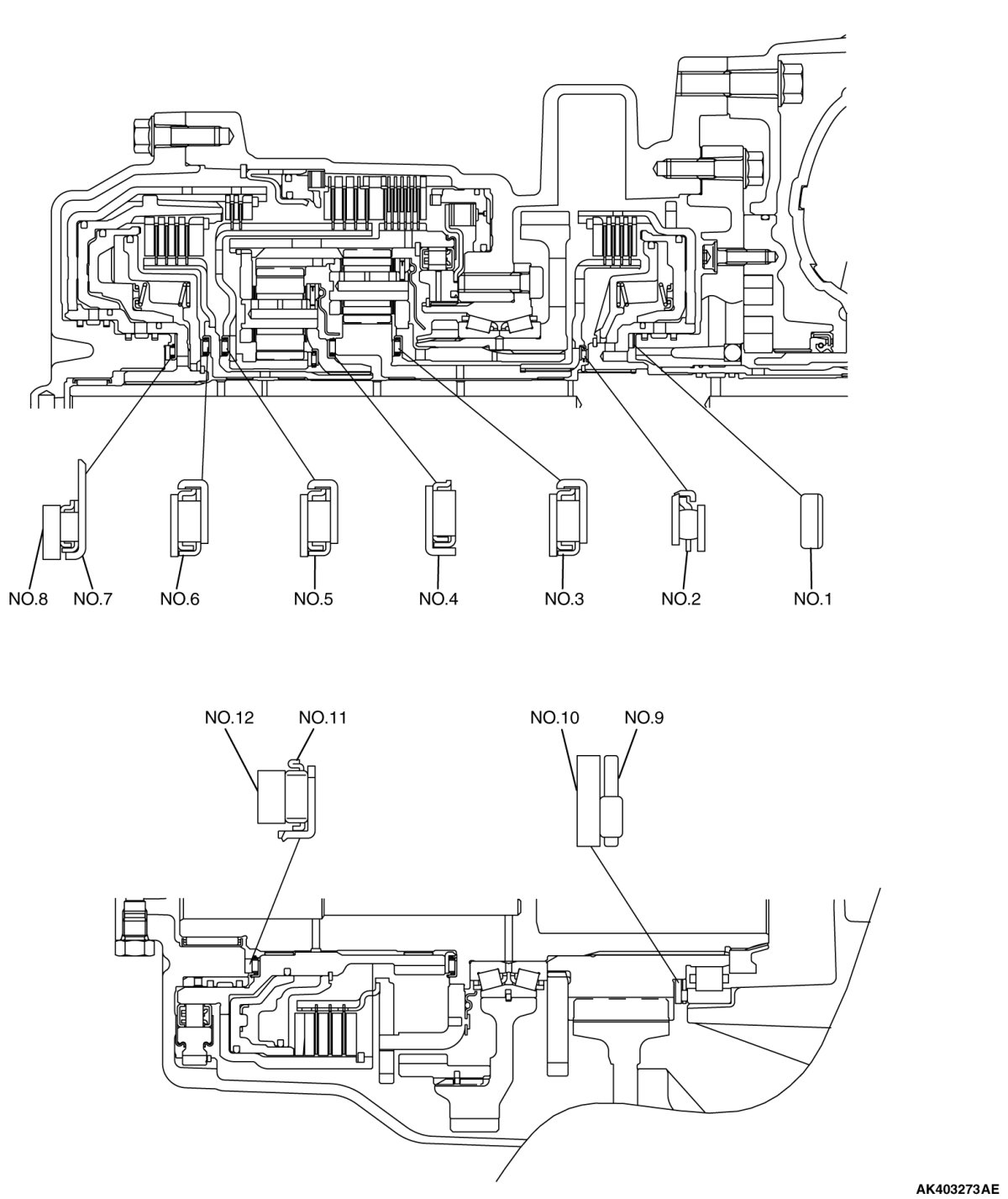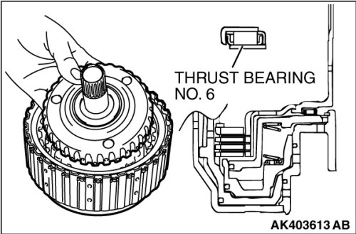 Check the installation direction of thrust bearing number 7, and install it on the reverse clutch retainer.