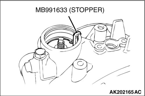(2) Install the stopper of the special tool MB991633 to hold the reduction brake piston against rotation.