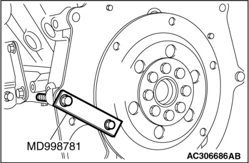 Use special tool MD998781 in the same way as during removal to install the flywheel bolts or drive plate bolts.