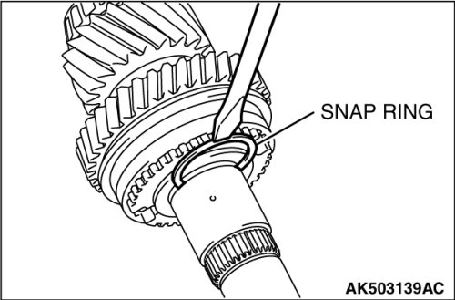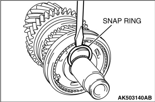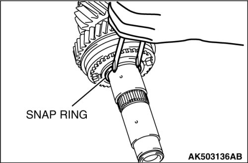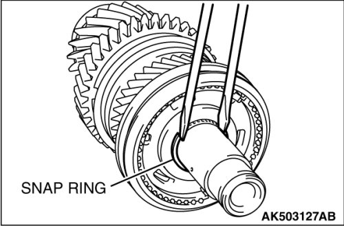17. Select a shaft snap ring that allows distance of the thrust crevice of 5th-6th hub to fall within the standard value range.