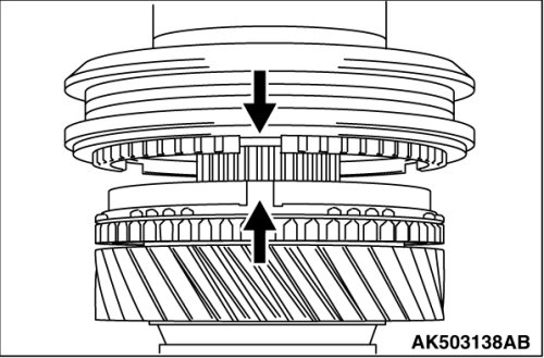 6. Combine the synchronizer hub with the synchronizer hub and synchronizer sleeve in the direction as shown in the illustration.