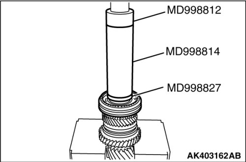 9. Using special tools MD998812, MD998814 and MD998827, install the synchronizer hub.