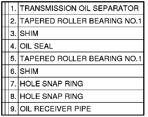 5. Using special tools MB990211 and MB992039, remove the tapered roller bearing No.1 and shim.