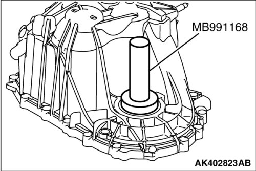 5. Using special tool MB991168, install the type T oil seal in the transaxle case.