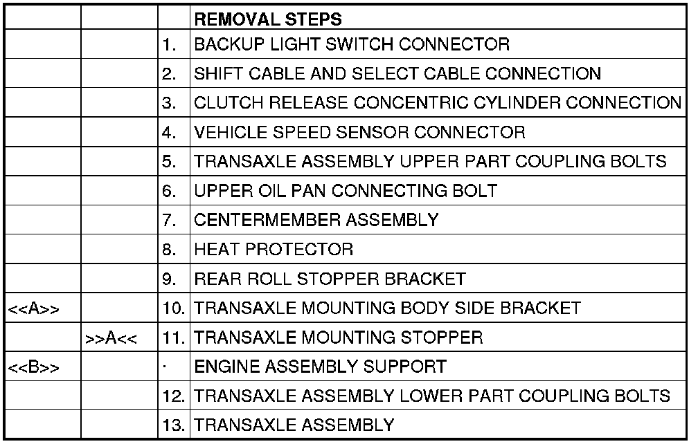 [[A]] TRANSAXLE MOUNT BRACKET REMOVAL