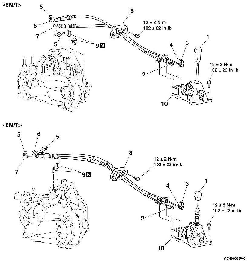 ]]D[[ SELECT CABLE CONNECTION (SHIFT LEVER SIDE) INSTALLATION [6M/T]