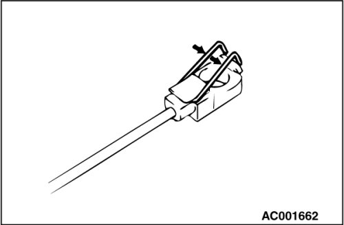 1. Make sure that there is no excessive play at the shift cable end clip. If there is excessive play or the clip is disengaged from the shift cable end, check the clip opening gap. If the gap is more than 9.5 mm (0.37 inch), squeeze the clip until the gap reaches 5 to 8 mm (0.20 to 0.31 inch).
