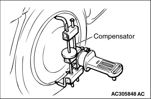 For vehicles with aluminum wheels, attach the camber/caster/kingpin gauge by using a compensator.