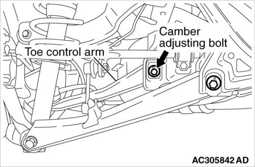 - When adjusting the camber, tighten the lower arm assembly and the trailing arm assembly, not the toe control arm.