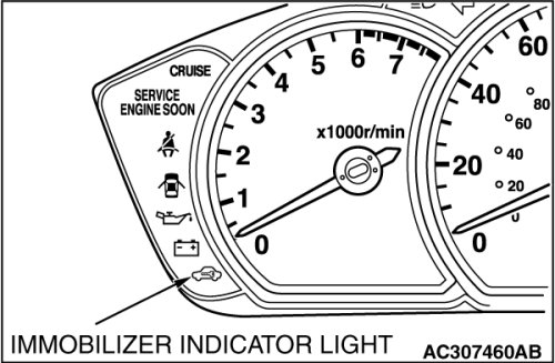 When an error occurs while the immobilizer indicator light is flashing, the immobilizer indicator light extinguishes.