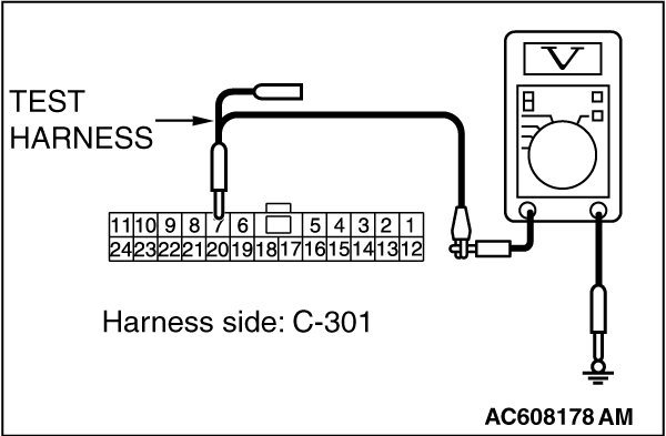 STEP 12. Check the wiring harness between ETACS-ECU connector C-301 and body ground for a short to power supply. Measure the voltage at ETACS-ECU connector C-301.
