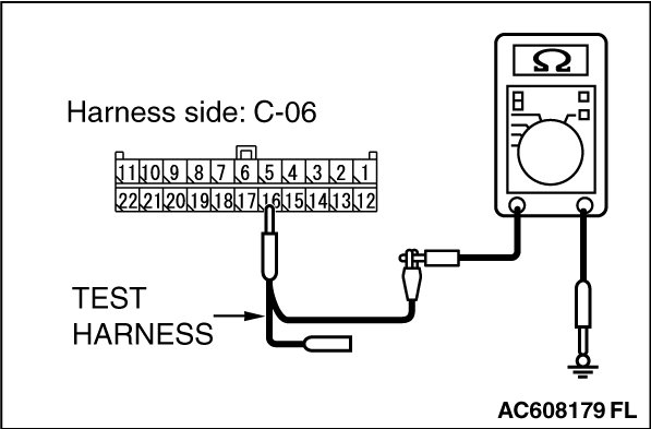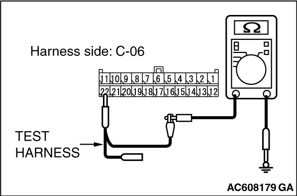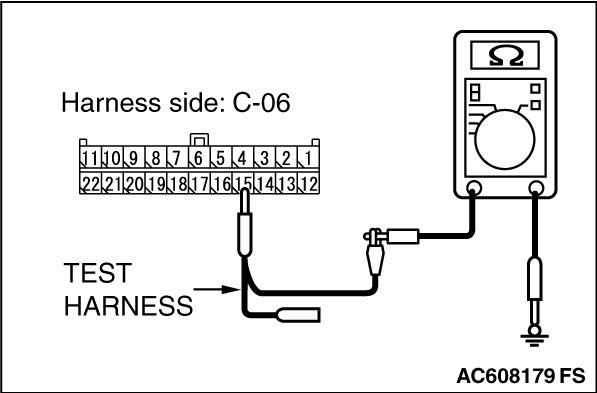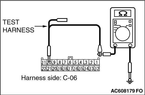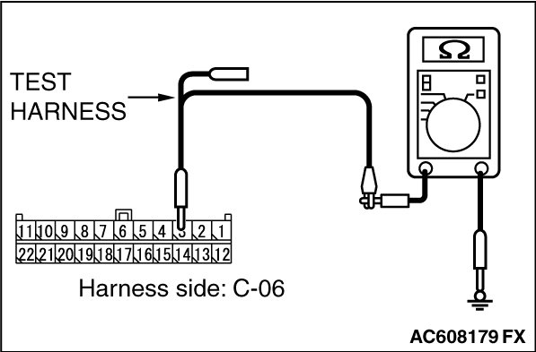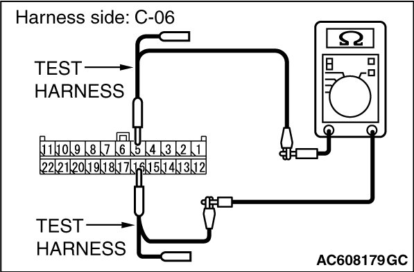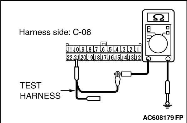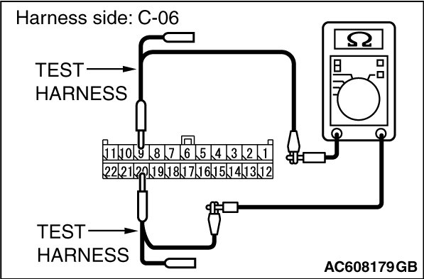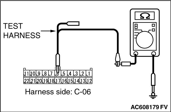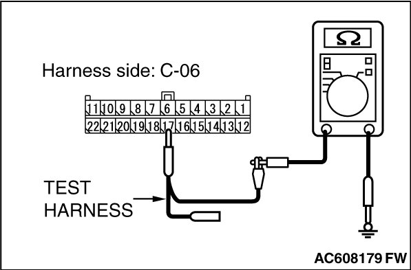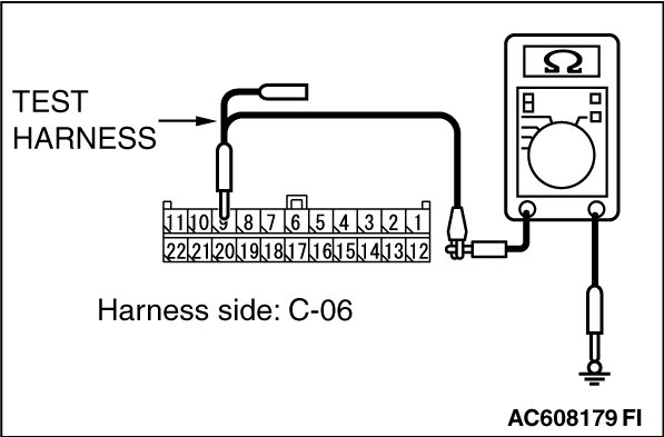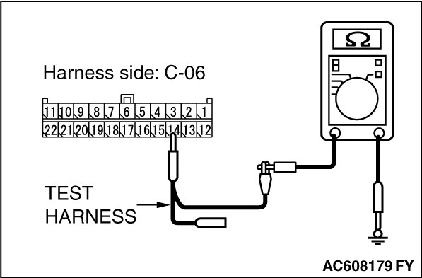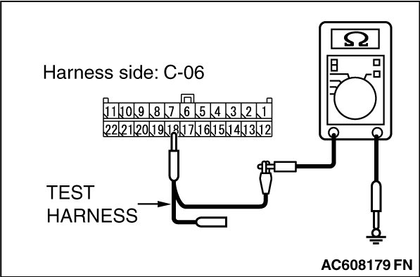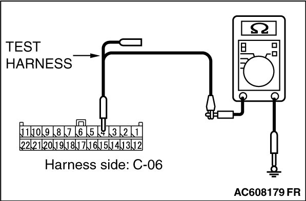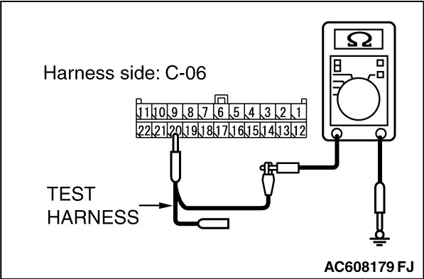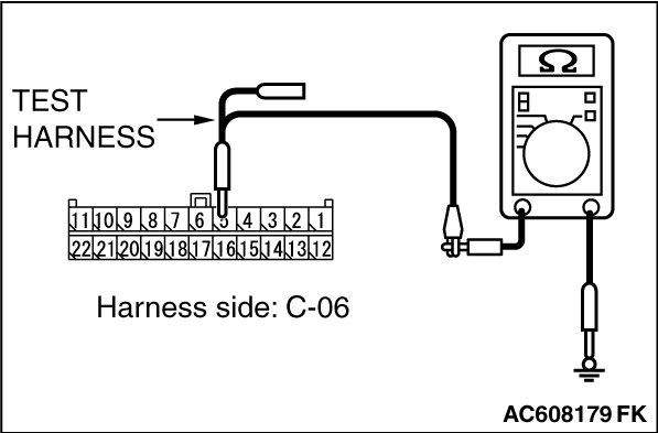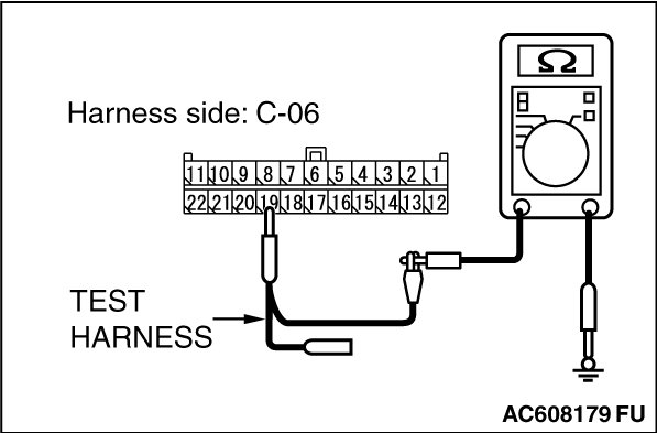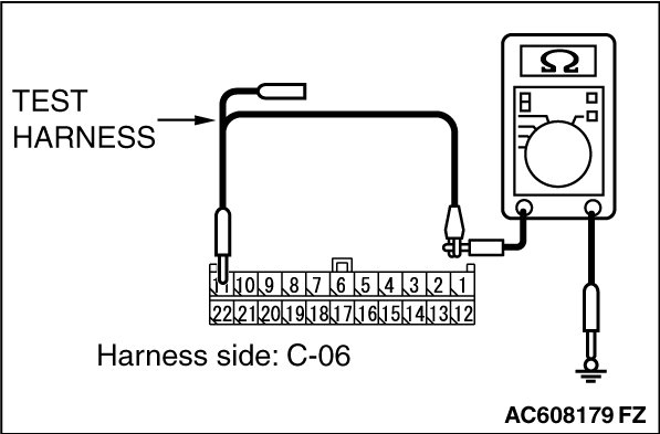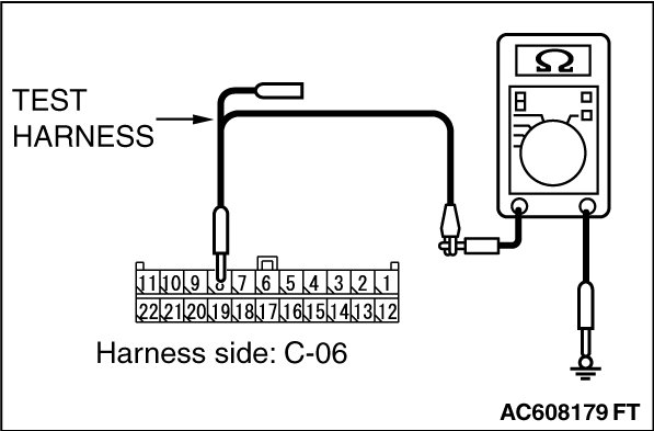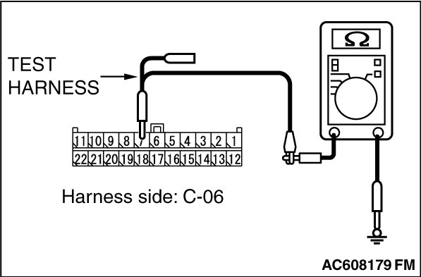 STEP 11. Check the wiring harness between joint connector (CAN1) C-06 and ETACS-ECU connector C-301 for a short to ground. Measure the resistance at joint connector (CAN1) C-06.
