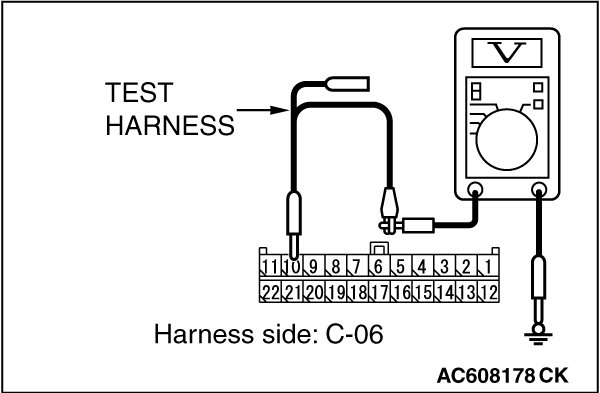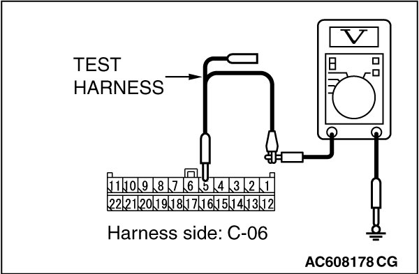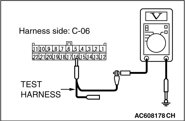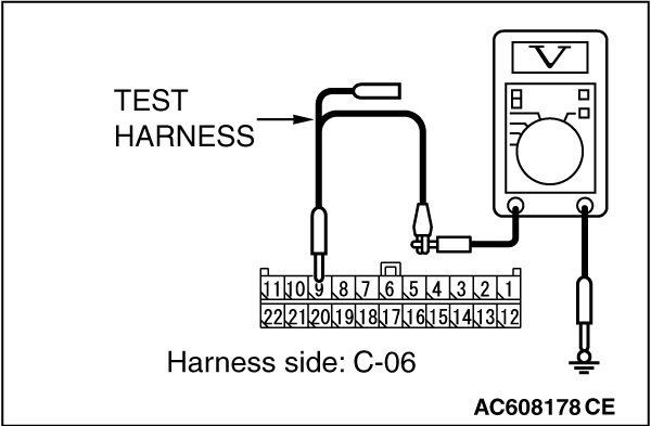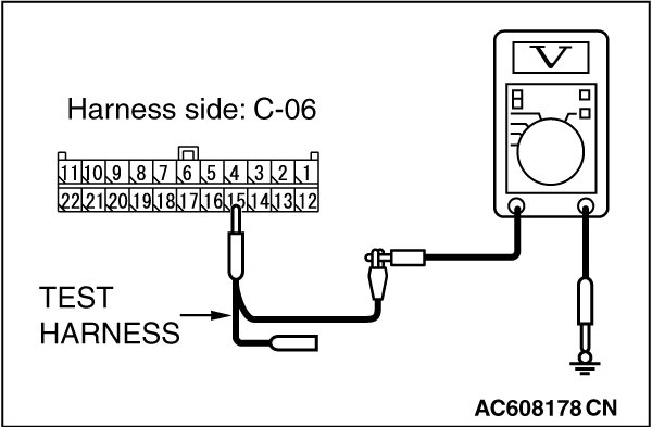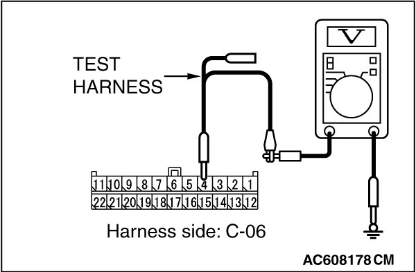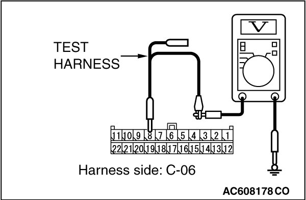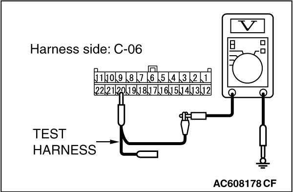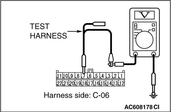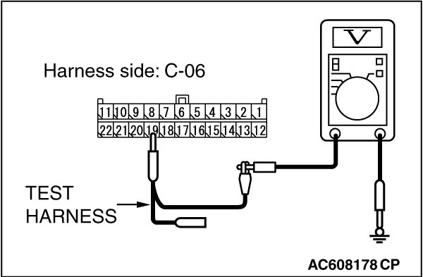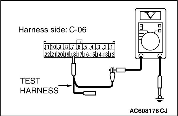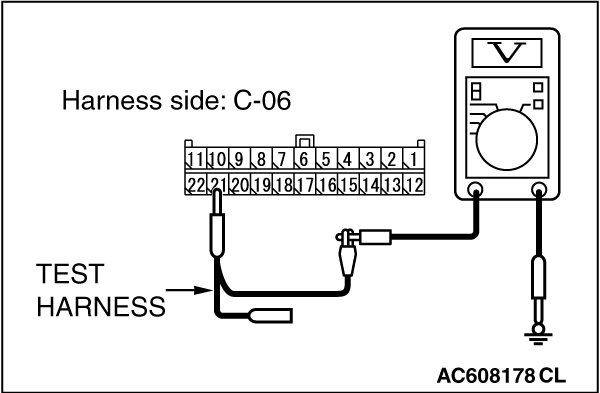 STEP 22. Check the wiring harness between joint connector (CAN1) C-06 and ETACS-ECU connector C-301 for a short to power supply. Measure the voltage at joint connector (CAN1) C-06.