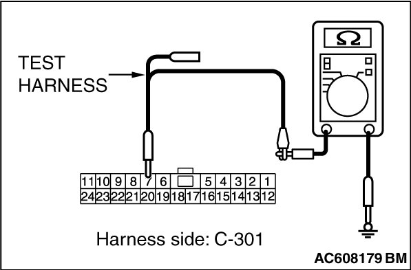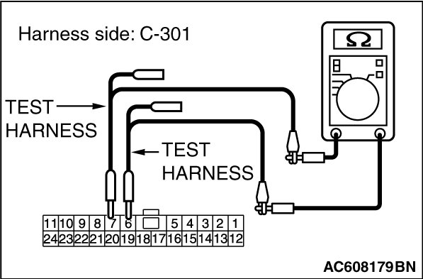 (1)Disconnect ETACS-ECU connector C-301, and check that there is continuity at the harness side of ETACS-ECU.