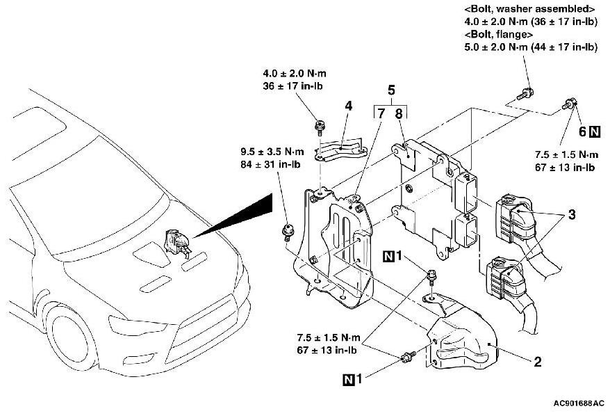 - After the replacement of the ECM, register a key code using scan tool MB991958 [ How to Perform Vehicle Identification Number (VIN) Writing.]