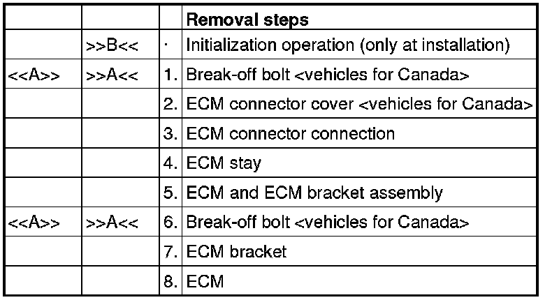 - When the ECM is replaced, do not replace the immobilizer ECU (WCM) or KOS-ECU simultaneously. When multiple ECUs are to be replaced, always replace only one ECU at a time and complete necessary ID registration using scan tool (Refer to ID registration procedure manual - ID codes registration judgement table ) [Vehicle with KOS installed] (Refer to ID registration procedure manual - ID codes registration judgement table ) [Vehicle with WCM installed].