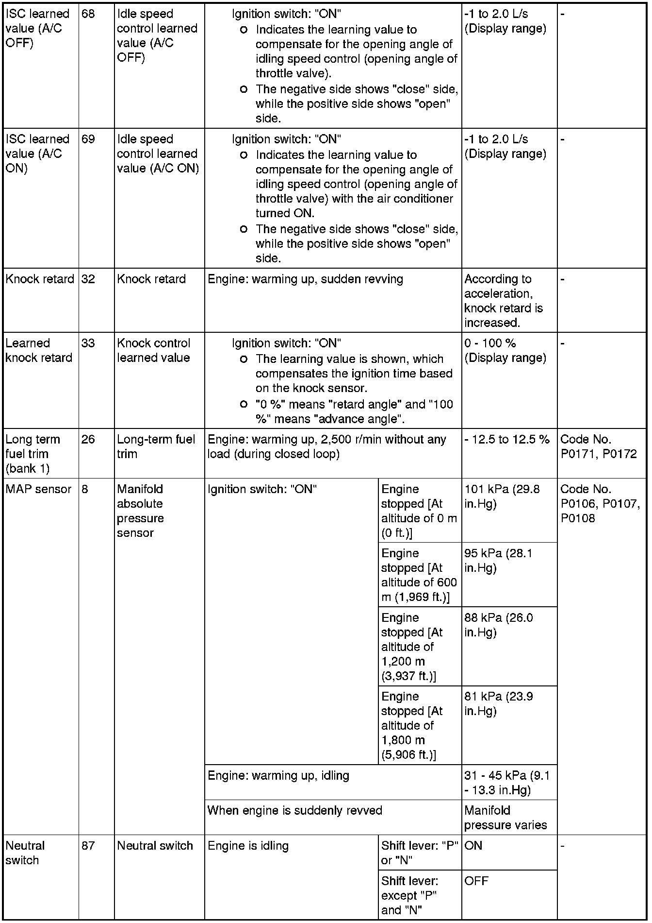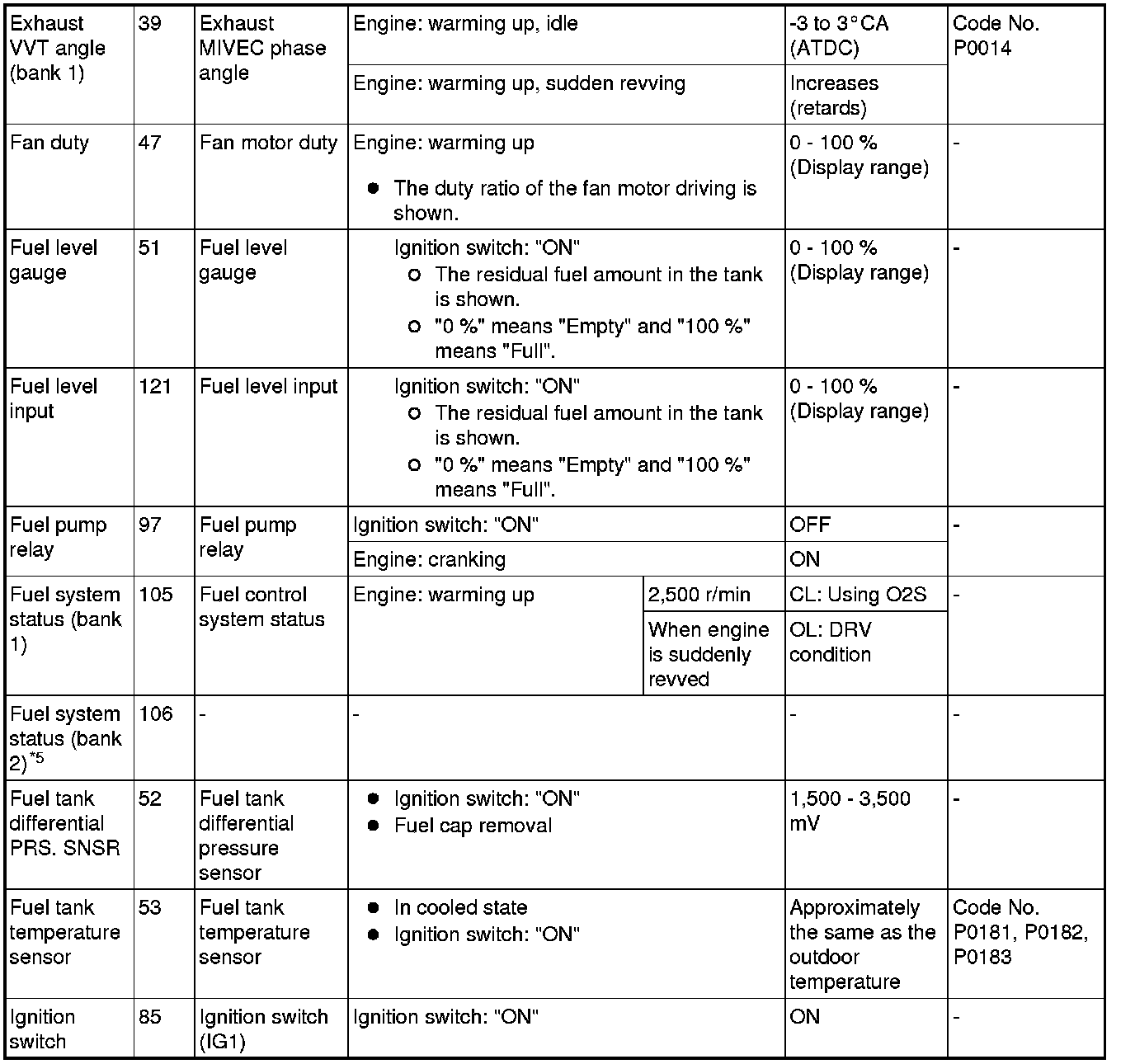 *5: Data items are displayed on scan tool display, but the in-line 4 engine is not applicable and its data is displayed as "N/A".