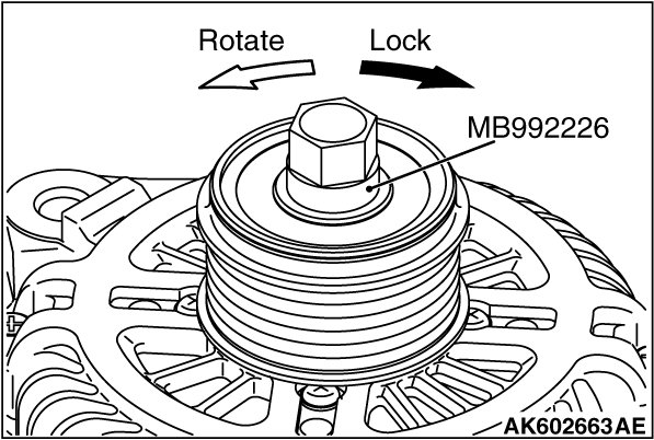 Locking the one-way clutch might cause the damaged drive belt and an abnormal noise.