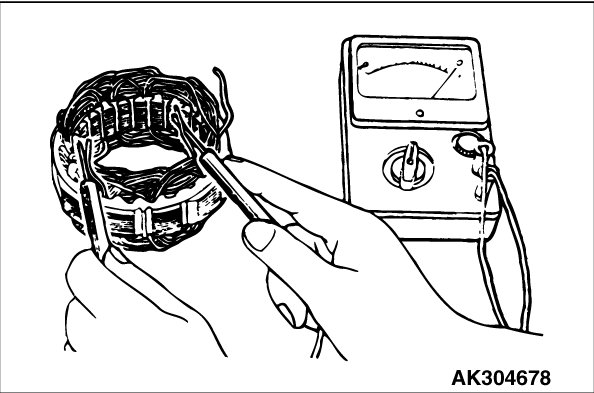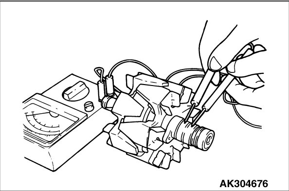 1. Measure the resistance between the two slip rings of the rotor coil to check the continuity between them.
