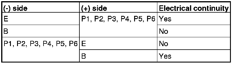 Use the analog type tester to make sure the electrical continuity of each diode meets the table.