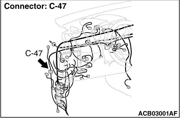 Check harness after checking intermediate connector C-47. If the intermediate connector is damaged, repair or replace it. Harness Connector Inspection.