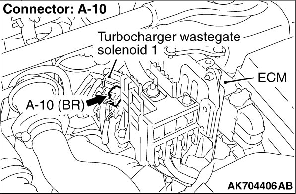 (1)Disconnect the turbocharger wastegate solenoid 1 connector A-10.