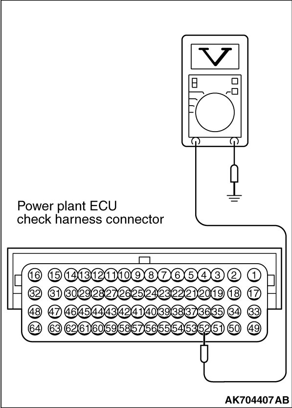 STEP 7. Measure the power supply voltage at ECM connector B-09 by using power plant ECU check harness special tool MB992110.