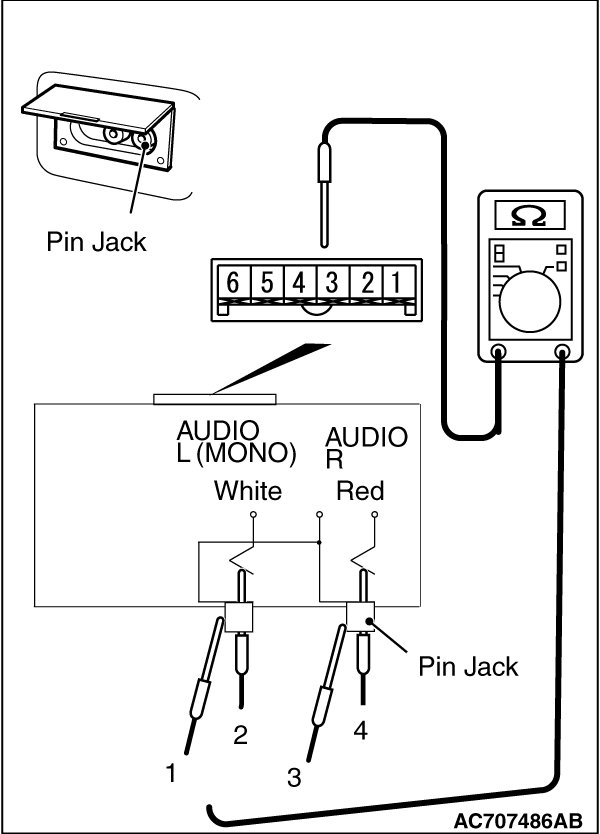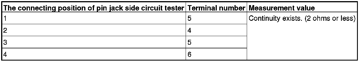 Check the continuity between terminals of audio adapter and pin jack.
