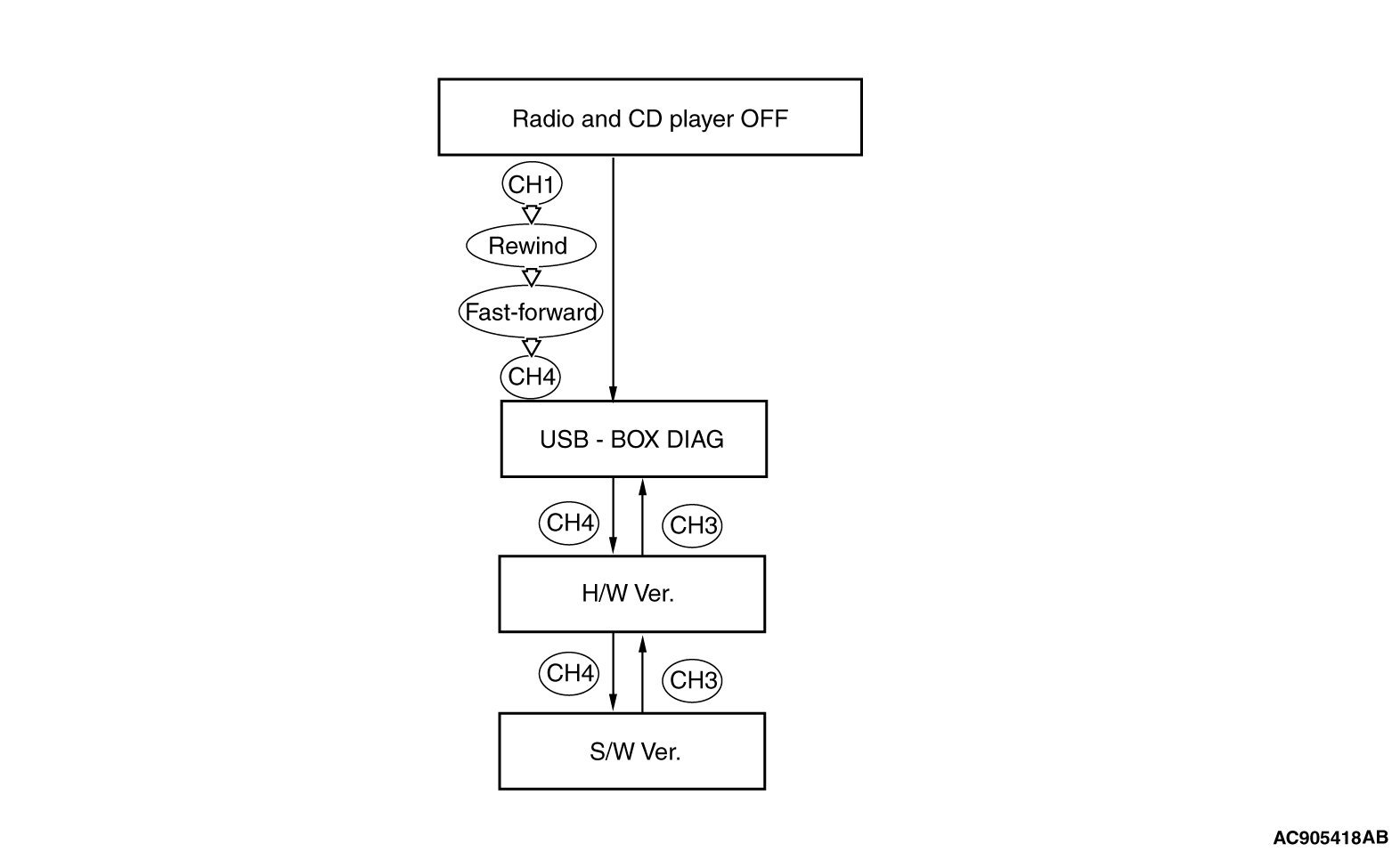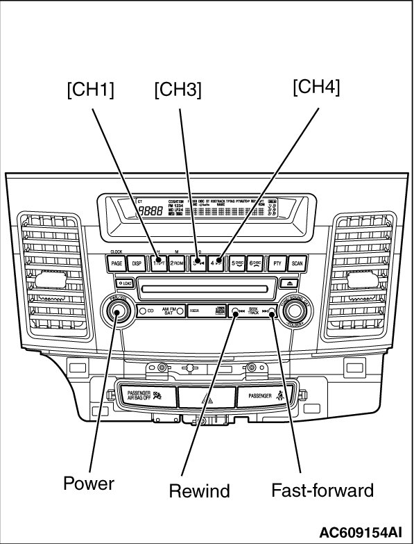 When the "Power" button of the radio and CD player is pressed during the diagnosis mode, the diagnosis mode will be cancelled, thus switching off the radio and CD player.
