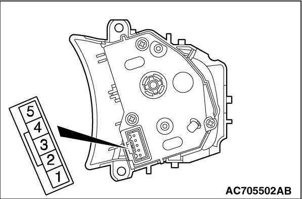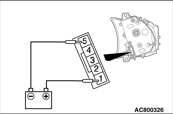 Apply the battery voltage of steering wheel audio remote control switch connector terminal No. 1 and 5, and check if the steering wheel audio remote control switch illuminates.