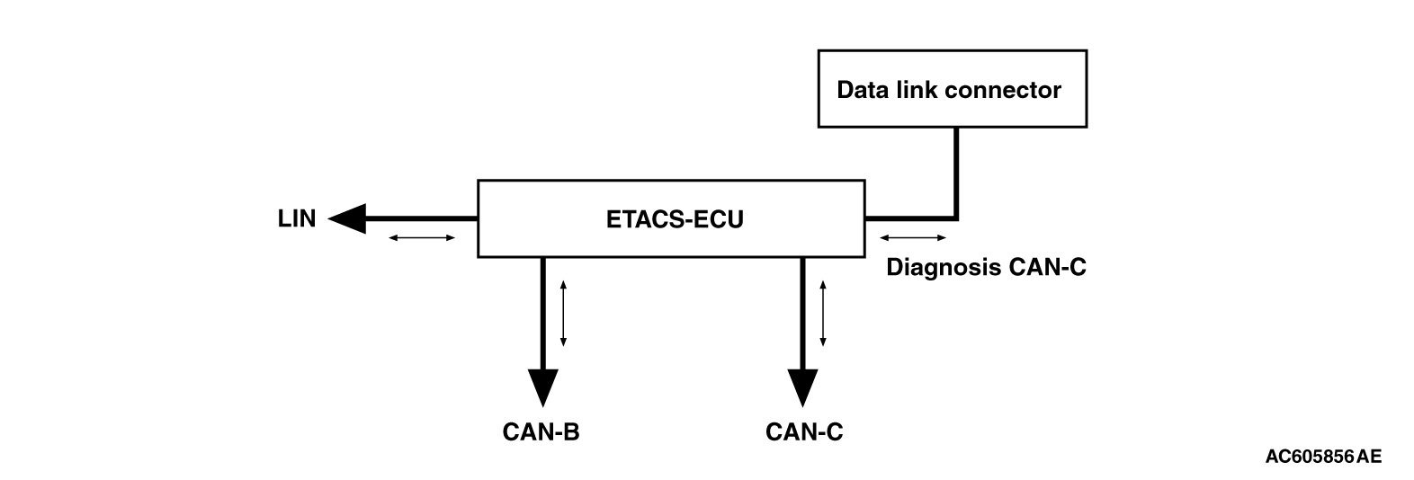 As a central ECU for the on-vehicle communication network system established in the vehicle, the gateway function is integrated into ETACS-ECU. The gateway function offers the following functions: