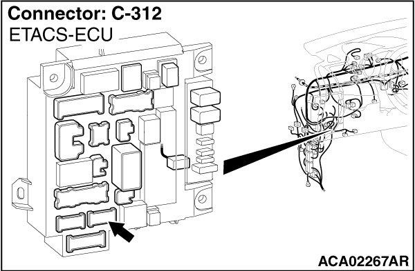 STEP 5. Check ETACS-ECU connector C-312 for loose, corroded or damaged terminals, or terminals pushed back in the connector.