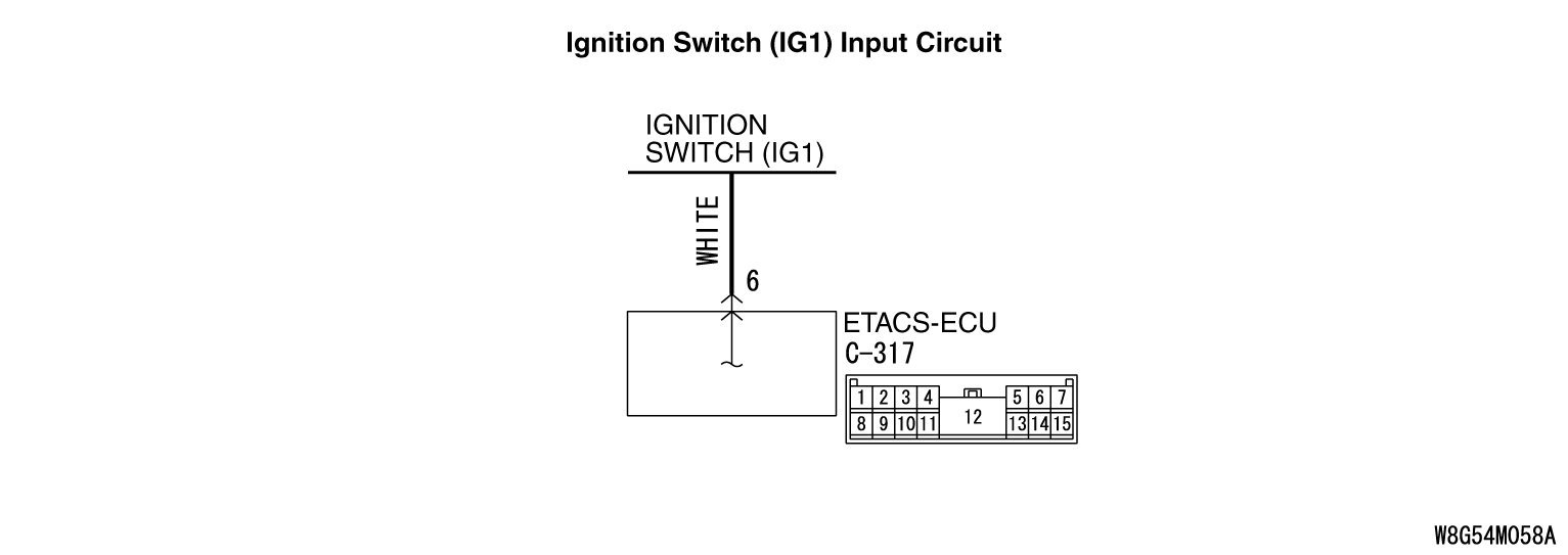 If there is an error to the ignition switch (IG1) input signal, or the IG1 relay inside the ETACS-ECU does not operate, the ignition switch (IG1) signal is no longer output to the communication line.