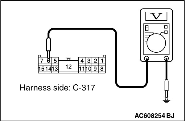 (1)Disconnect ETACS-ECU connector C-317 and measure the voltage available at the junction block side of the connector.