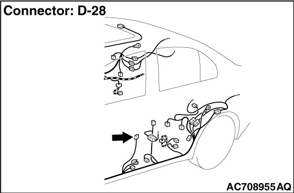 STEP 1. Check front door switch (LH) connector D-28 for loose, corroded or damaged terminals, or terminals pushed back in the connector.