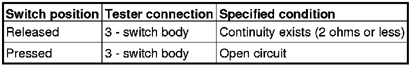 Remove the front door switch (LH). Then check the continuity between the switch terminals and the switch body.