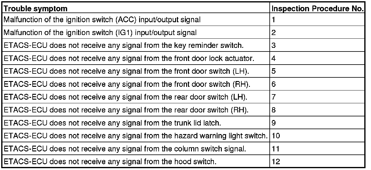 TROUBLE SYMPTOM CHART FOR INPUT SIGNAL
