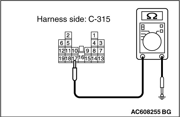 (2)Measure the resistance value between ETACS-ECU connector C-315 terminal 17 and ground.