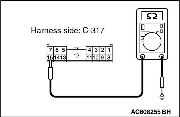 (3)Measure the resistance value between ETACS-ECU connector C-317 terminal 15 and ground.