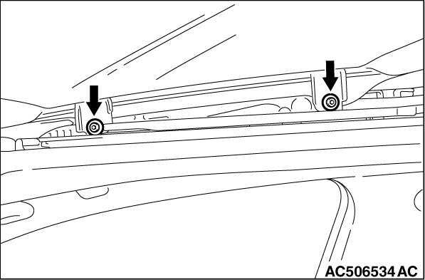 3. Loosen the sunroof lid glass assembly mounting screws. Adjust the sunroof lid glass height by moving the sunroof lid glass assembly along the sunroof lid guide oblong hole so that the clearance between the sunroof lid glass and the vehicle body is even throughout the circumference.
