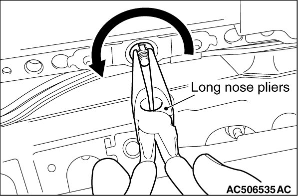 Use a pair of long nose pliers or the like to remove the sunroof assembly while turning it in the direction shown in the figure.