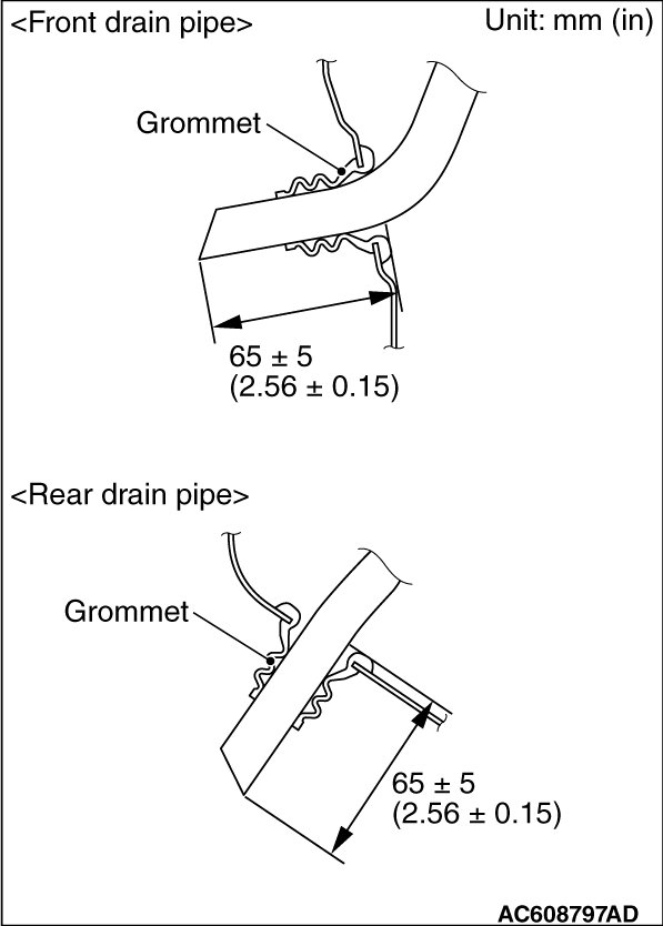 Install the grommet, and adjust the drain pipe projection as shown.