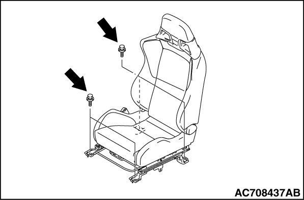 1. Temporarily tighten the bolts in all mounting locations shown in the illustration with no load applied to the front seat cushion and check the operation of the seat slide.