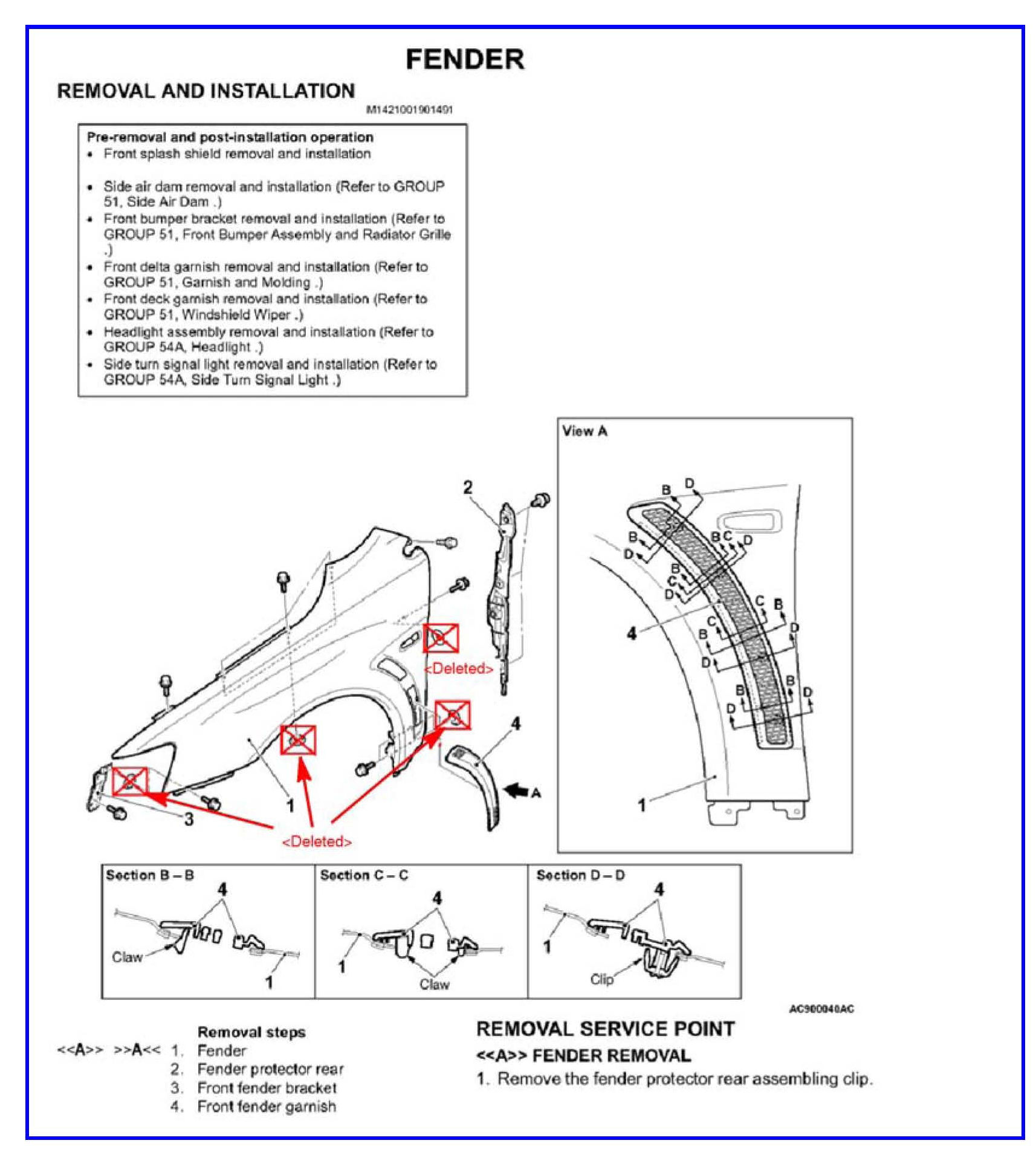 2012 Lancer Evolution Service Manual Group 42A: Body - Fender -Removal and Installation